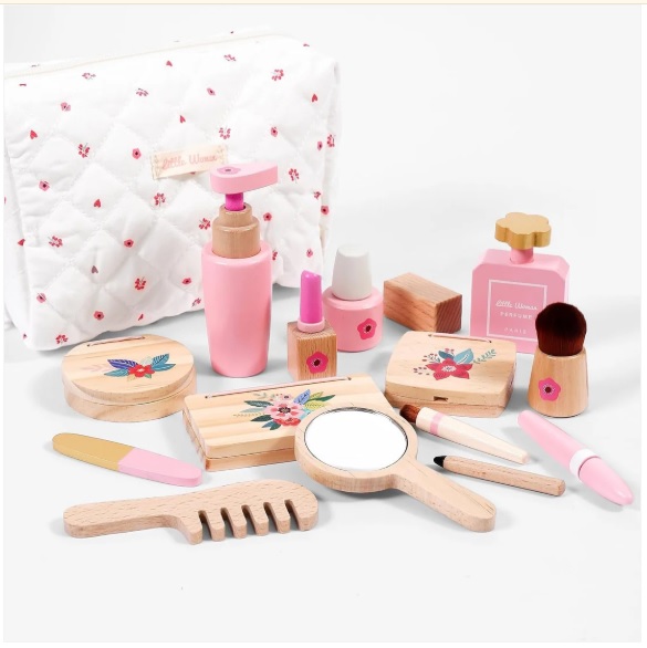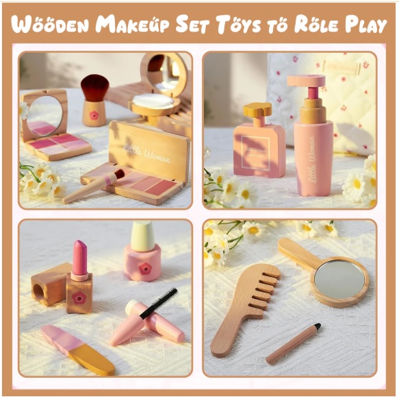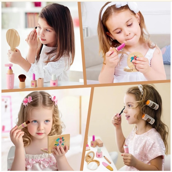 5.Crafted from high-quality, non-toxic wood, this toy ensures safety The wooden little woman’s makeup set is made of high-quality wood, and painted with non-toxic paint, beautiful and durable. They get made from natural wood and organic colors
