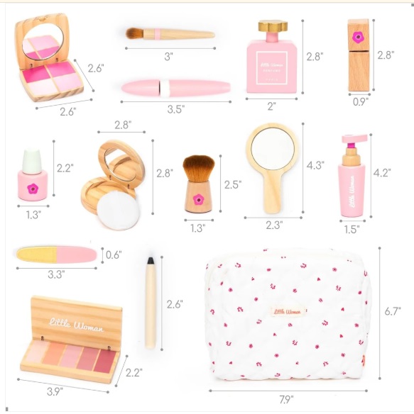 Let your little one enjoy a touch of glamour with the Little Woman’s Makeup Set! Designed for aspiring beauty enthusiasts, this charming set includes a variety of wooden makeup accessories that allow kids to indulge in imaginative play and mimic their favorite beauty routines.