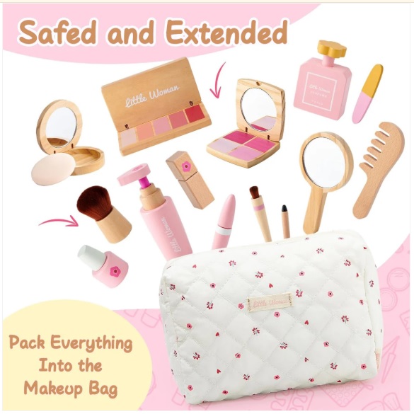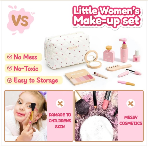 4. Perfect Gift For Wooden makeup toy set can be a gift for birthdays, holidays and other occasions. A fun and educational gift that your little princess will love it!